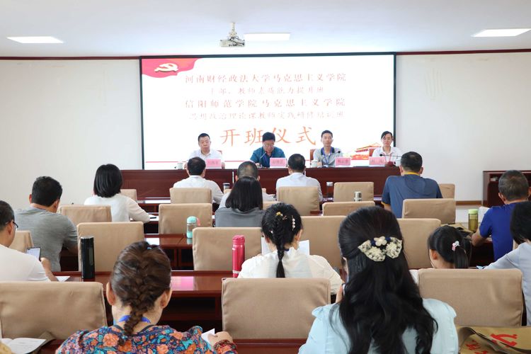 729-84日,河南財經(jīng)政法大學馬克思主義學院干部、教師素質(zhì)能力提升班與信陽師范學院馬克思主義學院思想政治理論課教師實踐研修班在我院隆重舉辦。30日上午,舉行了開班儀式。開班儀式由班主任劉進主持,太行山干部學院負責人呂偉軍同志作開班致辭,河南財經(jīng)政法大學馬克思主義學院院長趙增彥同志作開班動員,信陽師范學院馬克思主義學院院長楊云善同志為培訓班授旗。
